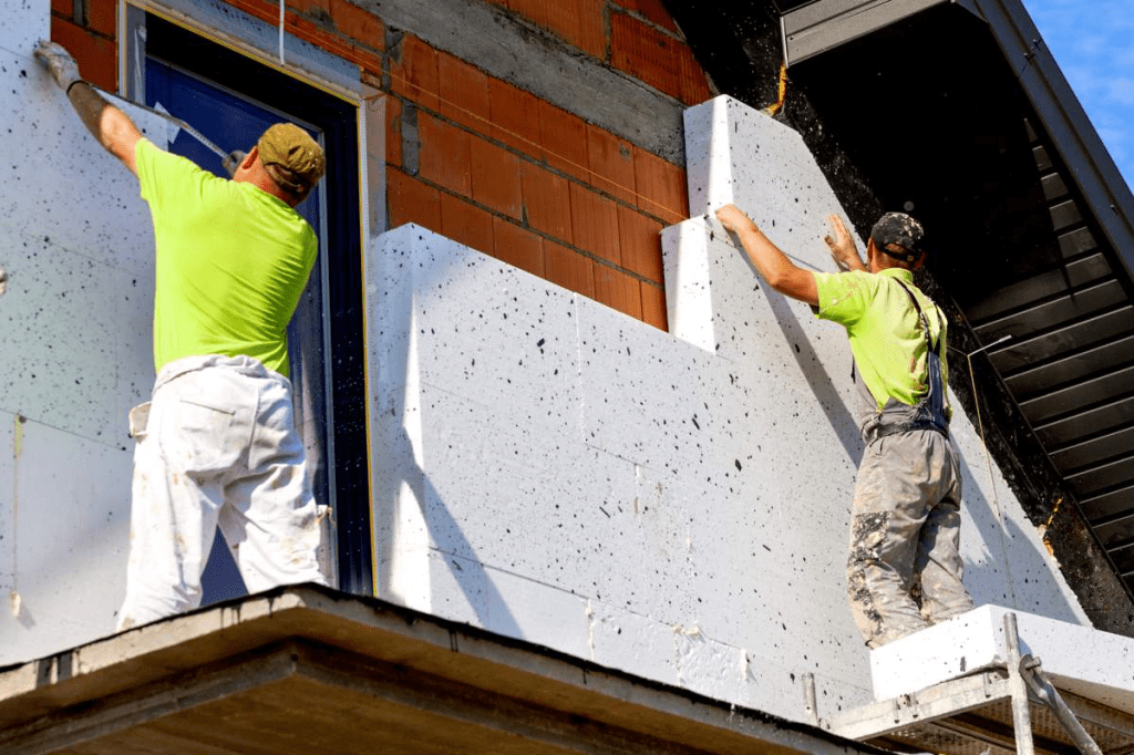 - poser une couche de matériau isolant sur les murs extérieurs de votre maison, puis le recouvrir d’un revêtement de finition ;